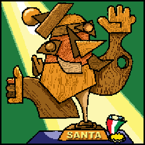 Bushy Evergreen is one of the greatest woodcarvers in the world. Through the centuries he has hand carved millions of wonderful wooden toys for boys and girls. Every year, he teaches his time-honored skills to a special group of young elves. Their final carving is entered in the woodcarving contest. They can carve anything they like as long as it is something that would make a fun, safe toy for a child. Bushy awards each elf a special hand-carved Santa Claus, signed by Bushy.