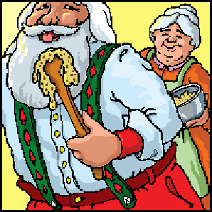Santa Claus loves to lick the batter spoon. And every year, Mrs. Claus catches him!