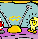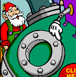 The toy making machine gets its inspiration from the dreams sent to Santa Claus from children all over the world. You can see them come into the Hulla-Ballu™ by parachute! To have the Hulla-Ballu™ make toys you select, click the big red button in the picture or click here. |